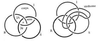 2) Les noeuds borroméens. Mais Lacan - non sans difficulté - entend rompre avec la logique du quatre qui est aussi la logique du Un comme exception ou comme unarité. Pour passer du Un ou Deux, et finalement retrouver une autre sorte de Un : l’Unien, il faut établir la logique ternaire du nœud borroméen. Nous restons dans une logique de la lettre ; ou plutôt il s’agit bien encore de la lettre, mais non plus sous forme de logique. Ce n’est plus la lettre dans son usage mathématique, la lettre du mathème ; plutôt celle du poème, poème amoureux s’entend. La topologie et l’amour “cessent de ne pas s’écrire”, selon l’expression de Lacan, ce qui veut dire qu’elles s’écrivent quand même, car elles tendent à faire passer la négation au “ne cesse pas de s’écrire” : “tel est le substitut qui (...) fait la destinée et aussi le drame de l’amour" (Lacan, Encore, p. 177). Le nœud de l’amour expose à une lumière nouvelle la figure du sujet, lui-même confronté à une nouvelle conformation du savoir : un savoir comme interne à sa propre mise-à-plat, dont il faut accepter d'être la dupe pour en déchiffrer les virtualités. Déchiffrer, c’est-à-dire subjectiver. Quant aux virtualités ce sont toutes les occurrences du retour du refoulé dans le réel, en quoi le sujet se décline sous l’espèce du symptôme. Bref, la topologie du nœud borroméen nous entraîne vers un réel du sujet affecté par l’amour. Le nouveau régime de l’Un y est remarquable, spécifique : au Un de la succession ou de l’exception, succède le Un de l’union et de la consistance. Ainsi le Réel du sujet, qui tient de l’Un, mais aussi du Trois, remplace-t-il avantageusement la “réalité psychique” postulée par Freud.