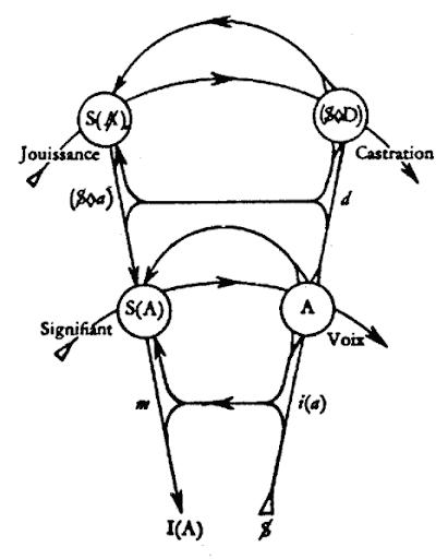 Puis l’orientation de Lacan se fait plus franchement logicienne. Le “mathème” se présente comme la transmission d’un savoir. Ce qui est à savoir est toujours la signification du sujet, c’est-à-dire son exclusion totale et irrémédiable de la jouissance. Les séminaires XII et XIII sont l’occasion de grands remaniements théoriques, ou plutôt d’une refondation du sujet lui-même à partir de sa certitude essentielle, contrastant avec l’indétermination du savoir qui le préoccupe. Lacan retrouve ainsi Descartes et le sujet de la science ; il continue de développer sa logique, notamment sur le thème de la négation, et parallèlement fait le lien entre l’écriture et la jouissance. Dans le séminaire XVI, Lacan introduit la figure de la bouteille de Klein. Cette figure met en place la dualité d'un signifiant (S1) et des autres (S2). Ou comment la consistance d'un ensemble d'éléments signifiants dépend-elle d'au moins Un qui lui fait défaut, et comment ce dernier extérieur à l'ensemble en constitue effectivement le bord. Cette figure se caractérise non plus par une coupure mais par un cercle de rebroussement, conditionnant la forme de toute la surface et symbolisant l'exception signifiante S1.
